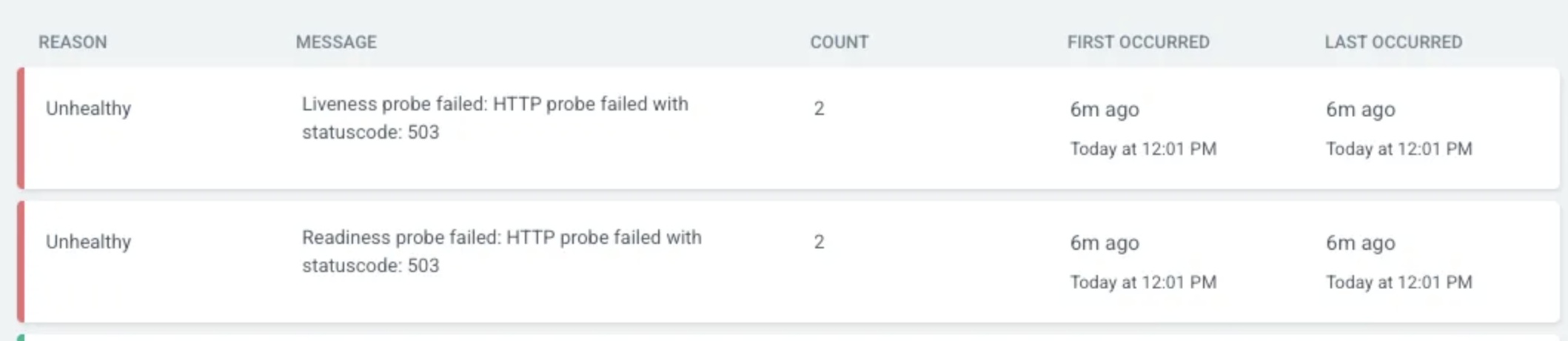 서두에 말한것과 같이 별도의 서버에 구성된 GrpcClient, GrpcService가 존재한다. 두 서버는 별도의 서버로 서로에게 영향을 주어서는 안될 것으로 생각했는데, GrpcService가 장애 상황이거나 응답할 수 없는 상황에 장애가 전파되어 GrpcClient까지 헬스체크가 실패해서 livenessProbe, readinessProbe에 모두 503 응답으로 ServiceUnavailable 상황이 되었다.